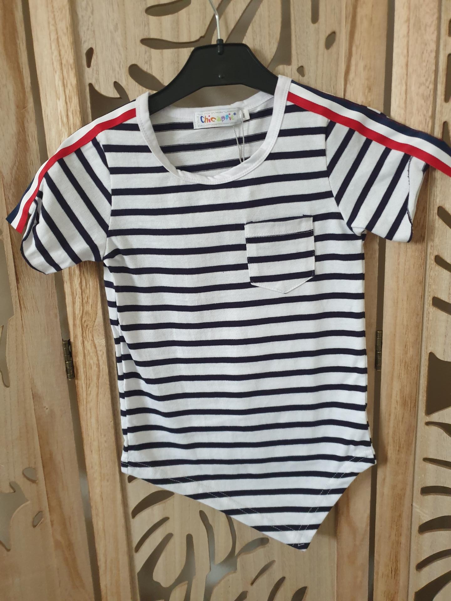Tee-shirt marinière avec un ruban bleu blanc rouge sur les épaules